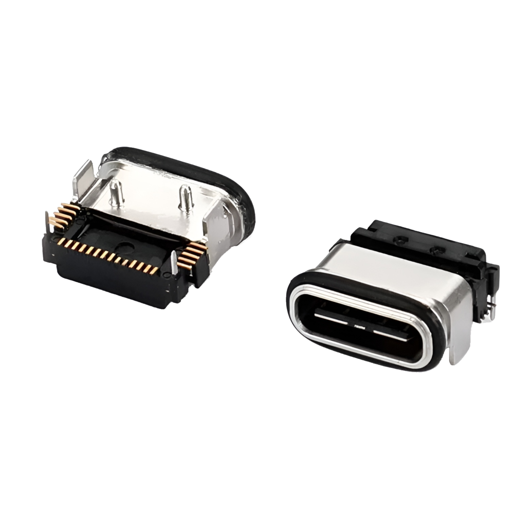 TYPE C 24P防水母座 沉板1.6MM 雙貼SMT 長(zhǎng)度L=9.8MM CH=0.37MM 防水IPX8 華為mate20/40 P30/P40尾插