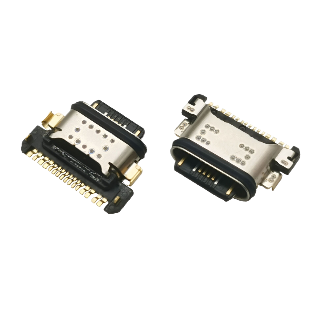 TYPE C 16P防水母座 板上單排SMT 四腳沉板1.15MM 長(zhǎng)度L=9.4MM 鍍鉑金 防水IP67 VIVO X30尾插